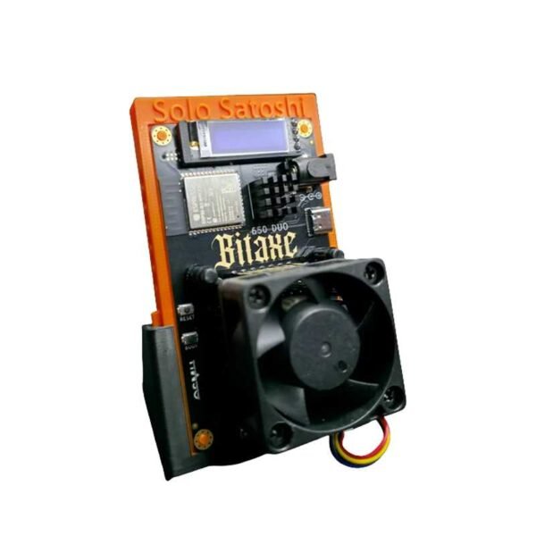 Bitaxe Gamma Duo 650 keeps everything users love about the Gamma series: the compact form factor (4″ x 2.25″ x 2″), 5V DC power input, 40mm fan cooling, and full compatibility with all existing Gamma mounts, cases, and enclosures. If you own a Solo Satoshi display stand or a 3D-printed Gamma case, the Gamma Duo 650 fits right in.
